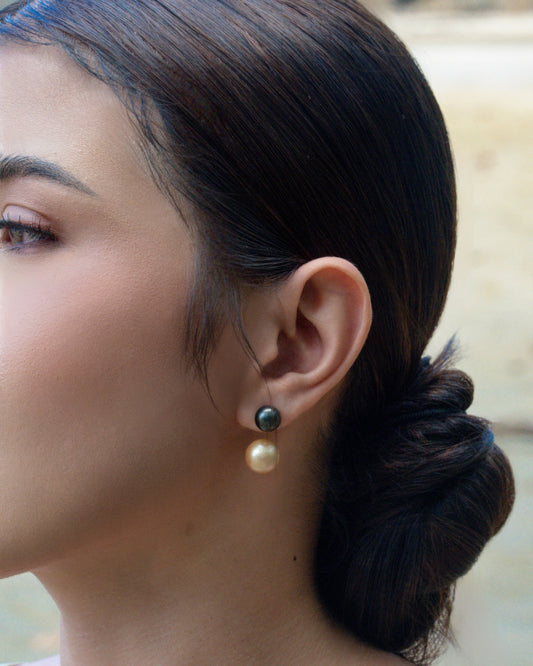 Aquapearl Almira 14k Gold South Sea Pearl Black and Gold Tribal Earrings