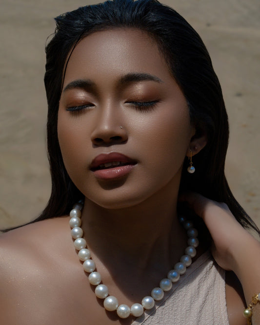 Aquapearl South Sea Pearl Necklaces are breathtaking symbol of elegance and timeless beauty. Featuring luminous, natural white pearls from the Pinctada maxima oysters, these pearls are renowned for their exceptional size, radiant luster, and smooth surface. Each pearl is hand-selected and perfectly matched to create a harmonious strand that exudes luxury. Cultivated in the pristine waters of the South Pacific, these rare pearls offer a stunning, classic look that complements any style. These necklaces are a true statement piece, reflecting both sophistication and the finest craftsmanship in pearl jewelry.
